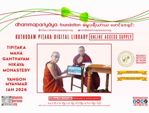 Dhammapariyāya FoundationOnline Access Supply for Buddhist University Library 2026 Program Purpose Institution/Individual Research Initiative & Network Kuthodaw Piṭaka Digital LibraryOnline Access Supply International Buddhist Studies College Library, MCU, Thailand More info @ KPDL Online Access Supply > https://dhammapariyaya.org/kpdl-online-access/ Dhammadīpanā Distribution Project…