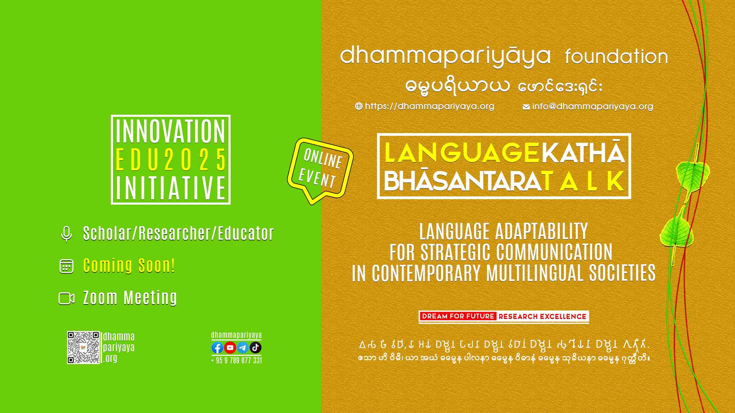 ဓမ္မပရိယာယဖောင်ဒေးရှင်း၏ ပညာရေးနှင့်သုတေသနလုပ်ငန်းဆိုင်ရာ ဆောင်ရွက်လှုပ်ရှားမှုအနေနှင့် ပညာရေးနှင့်သုတေသန နှီးနှောဖလှယ်ပွဲများ၊ ဟောပြောပွဲများ၊ ဆွေးနွေးပွဲများ၊ ပြပွဲများ၊ ရန်ပုံငွေရှာဖွေပွဲများ၊ ဆုချီးမြှင့်ပွဲများနှင့် တွေ့ဆုံမိတ်ဆက်ပွဲများကို အခါအားလျော်စွာ ကျင်းပပြုလုပ်သွားမည်ဖြစ်ပြီး အခမ်းအနားအစီအစဉ်များကို ကြိုတင် အသိပေးကြေငြာပါမည်။