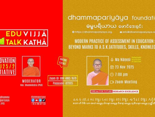 Dhammapariyāya FoundationEducation & Innovation Event (Season 3)Edu Talk 2025/2 Event Theme Edu Talk “Educational Transformation: In-depth Exploration in 21st Century Learning Environment” Topic Speaker Schedule Modern Practice of Assessment in Education: Beyond Marks to A.S.K. (Attitudes, Skills, Knowledge) Ma Ñāṇesī(Postgraduate…