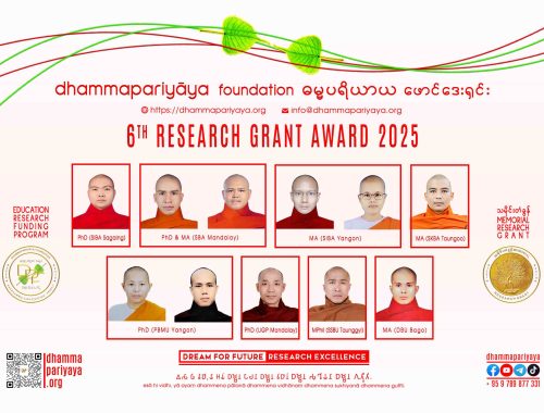 Dhammapariyāya FoundationEducation and Research Funding Program & သမိုင်းတံခွန်Memorial Research Grant6th Research Grant Award2025 Scheme – Recipients More info @ https://dhammapariyaya.org/announcement/ https://dhammapariyaya.org/research-grant/ https://dhammapariyaya.org/erf/