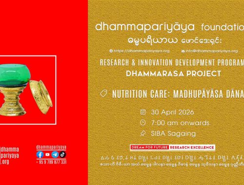 Dhammapariyāya Foundation🍀Research and Innovation Development Program🔖Dhammarasa Project – Nutrition Care: Madhupāyāsa Dāna Program Project Schedule Research and Innovation Development Program Dhammarasa Project 🔖Nutrition Care: Madhupāyāsa Dāna 📅 30 Apr 2026 / Kason Full Moon 1388⏰ 7:00 am onwards📍SIBA Sagaing More…