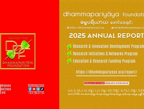 Research Grant Dhammapariyāya Research Grant October 7, 2021 ဓမ္မပရိယာယ ဖောင်ဒေးရှင်း ပညာရေးနှင့် သုတေသန ပံ့ပိုးရေးအစီအစဉ် သုတေသနထောက်ပံ့ဆု ဗုဒ္ဓစာပေလေ့လာရေးနှင့်တကွ ဆက်နွယ်ရာကဏ္ဍများအတွင်း သုတေသနလုပ်ငန်းများ ဆောင်ရွက်ရန် စိတ်ဝင်စားသည့် သုတေသီ ရဟန်း သီလရှင် ကျောင်းသူ ကျောင်းသားများအတွက် ရည်ရွယ်သည့် အနှောင့်အဖွဲ့ ကင်းရှင်းသော ဘွဲ့လွန်သုတေသနထောက်ပံ့ဆု ချီးမြှင့်လှူဒါန်းမှု အစီအစဥ်ဖြစ်သည်။ Read more. Previous Dhammapariyāya Scholarship Newer Dhammapariyāya Research & Innovation Award You May Also Like Support for DPF 2025 – Kuthodaw Piṭaka Pāḷi Inscription Digital Version Donation – Thailand July 26, 2025 DPF 2025 Annual Report January 1, 2026 DPF 2023 Annual Report December 28, 2023