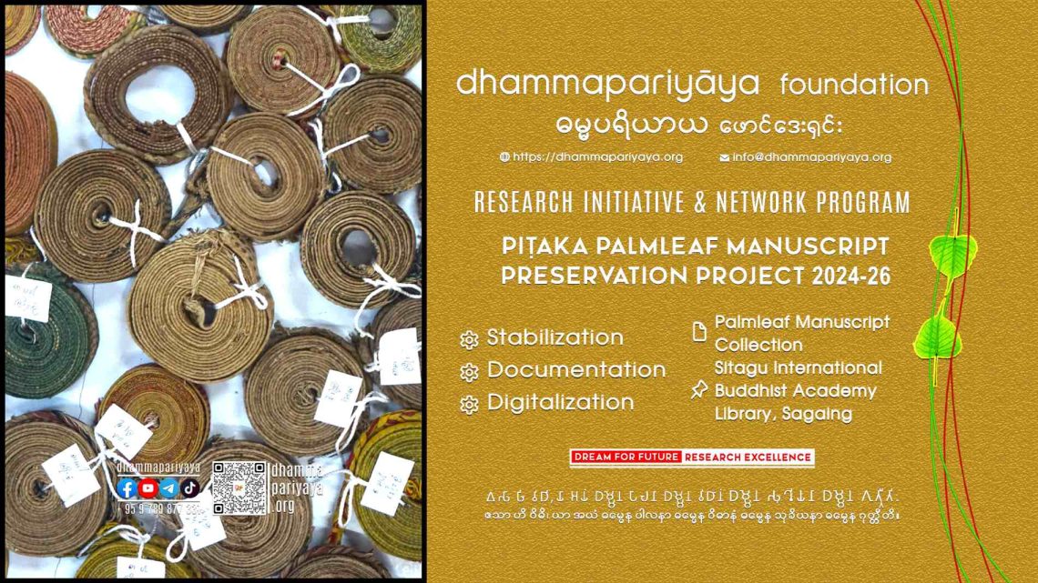 Preservation Project, Project, RIN DPF Piṭaka Palmleaf Preservation Project 2026-01/4.0 March 30, 2026 Dhammapariyāya Foundation🍀Research Initiative and Network Program🔖Piṭaka Palm-Leaf Manuscript Preservation Project 2024-26 ProgramProjectProject OutlineResearch Initiative and Network ProgramPiṭaka Palm-Leaf Manuscript Preservation Project1) Stabilization2) Documentation3) Digitalization ScheduleProject SitePhase 1Section 226-29 March 2026Piṭaka Palm-leaf Manuscript CollectionSitagu International Buddhist Academy Library Sagaing More info @https://dhammapariyaya.org/preservation-project/ Previous DPF Library Restoration and Renovation 2026 Newer DPF KPDL Online Access Supply - 2026 - Sakyadhītā Pariyatti Nunnery You May Also Like DPF KPDL Online Access Supply – 2026 – Sakyadhītā Pariyatti Nunnery March 31, 2026 DPF KPDL Network (2025) March 25, 2025 DPF KPDL Online Access Supply – SKBA March 18, 2025