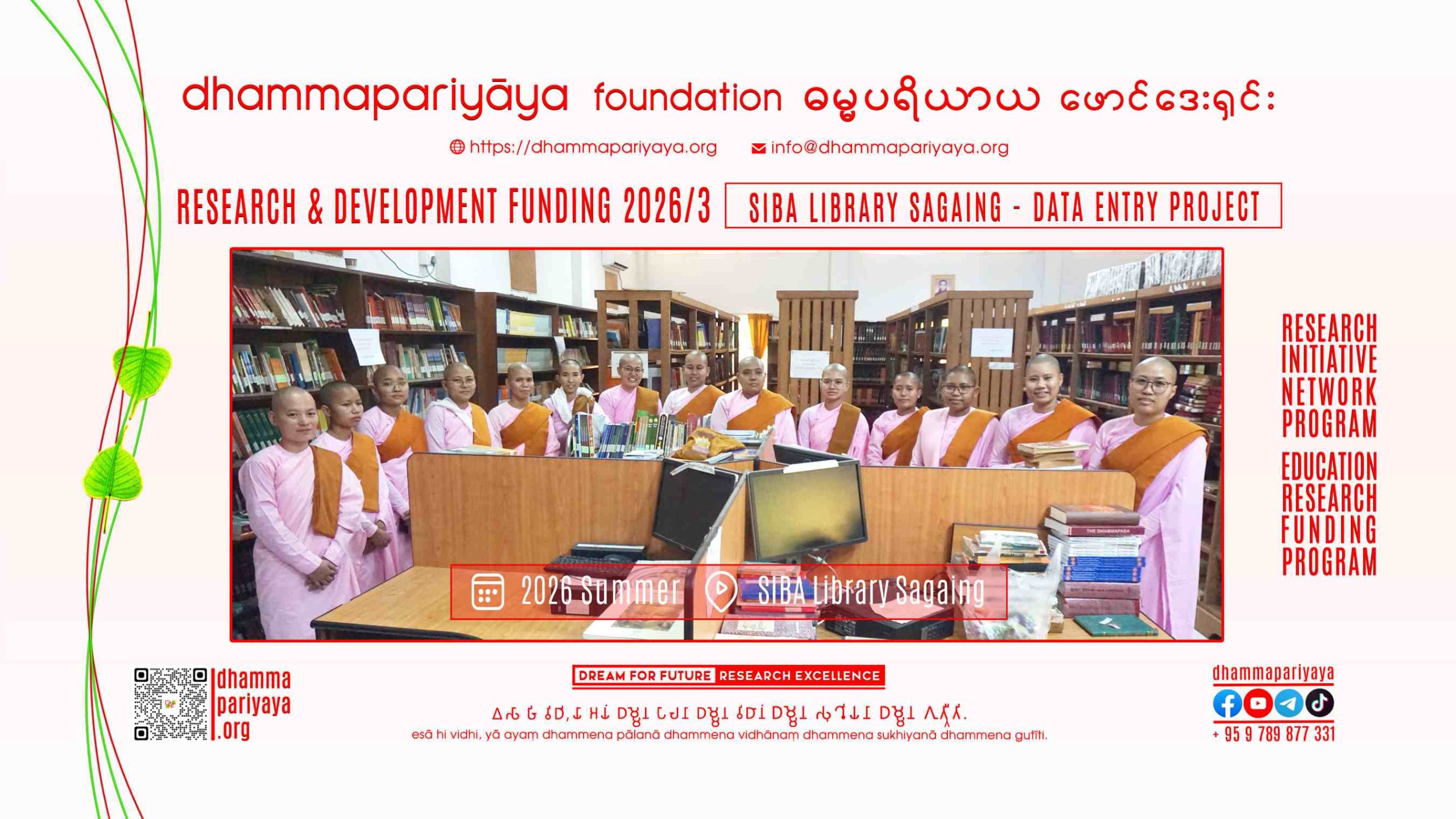 ပိဋကဗဟိုပြု ပညာရေးကဏ္ဍနှင့် အခြားသော ဆက်နွယ်ရာ ကဏ္ဍများတွင် သုတေသနလုပ်ငန်းနှင့် တီထွင်ဆန်းသစ်မှုလုပ်ငန်းများ ဖွံ့ဖြိုးတိုးတက်ရေးအတွက် ပညာရေးဆိုင်ရာ၊ အိုင်စီတီဆိုင်ရာ သုတေသနစီမံကိန်းများနှင့်အတူ ကမ္မဋ္ဌာန်း/ဝိပဿနာ အသုံးချသုတေသနစီမံကိန်းများ ချမှတ်ဆောင်ရွက်မည် ဖြစ်သည်။ > Read more.